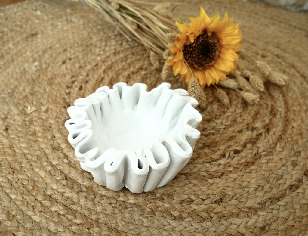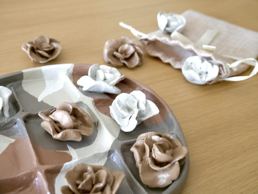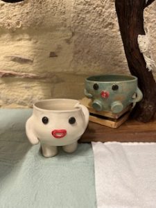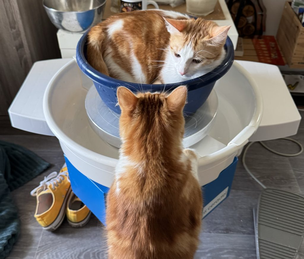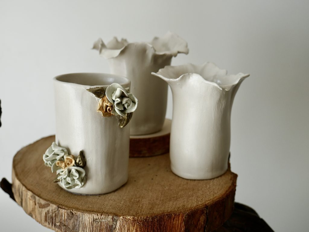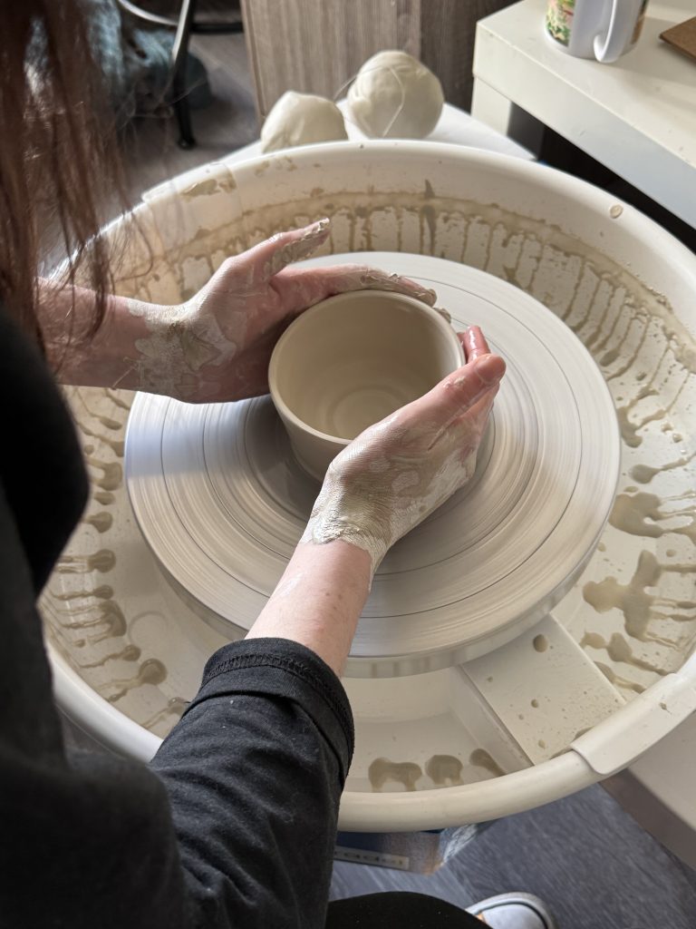 J’utilise principalement du grès porcelainique lisse pour mes sessions au tour et un grès chamotté lorsque je pratique le modelage.
