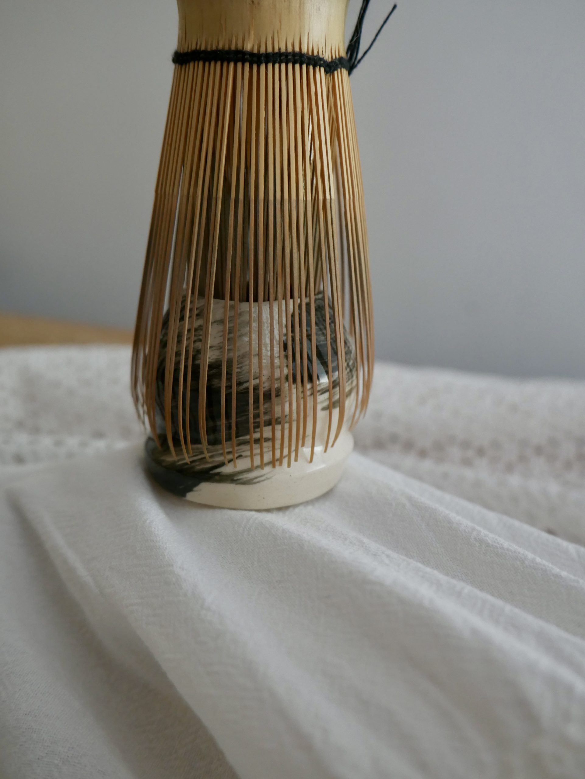 Support pour fouet en bambou réalisé au tour. Son émaille transparent brillant le rend compatible au contacte alimentaire et avec un lavage au lave vaisselle. Parfait compagnon pour les amateurs de thé matcha.