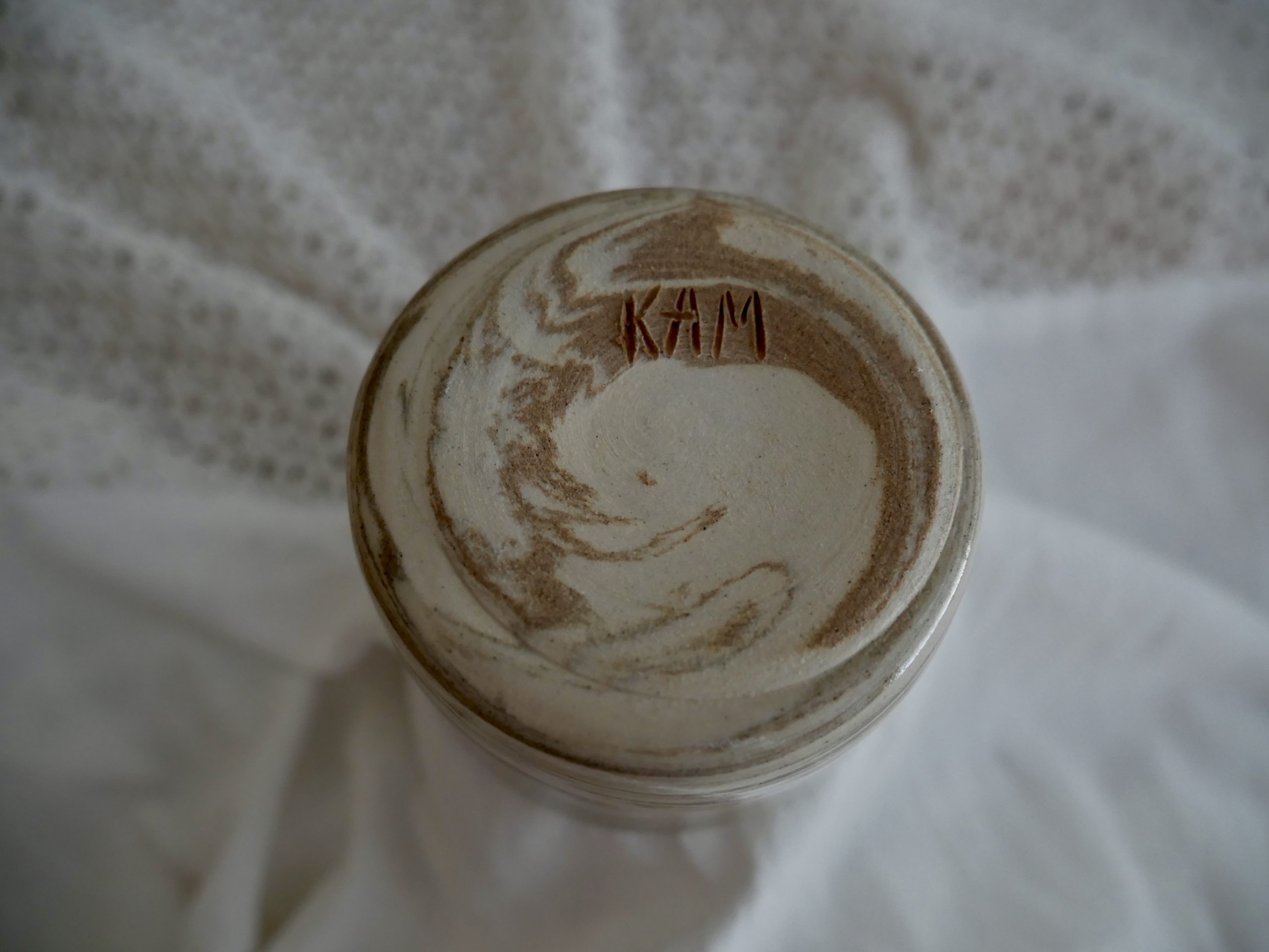 J’ai utilisé un grés blanc et une terre plus foncée pour obtenir cet effet marbre. La finition est un émail transparent brillant permettant l’étanchéité de la tasse. Vous pouvez la passer au lave-vaisselle; au micro-onde et elle est favorable au contact alimentaire. Je reste disponible pour toute demande personnalisée et sur-mesure dans l’espace contact. Contenance=125mL